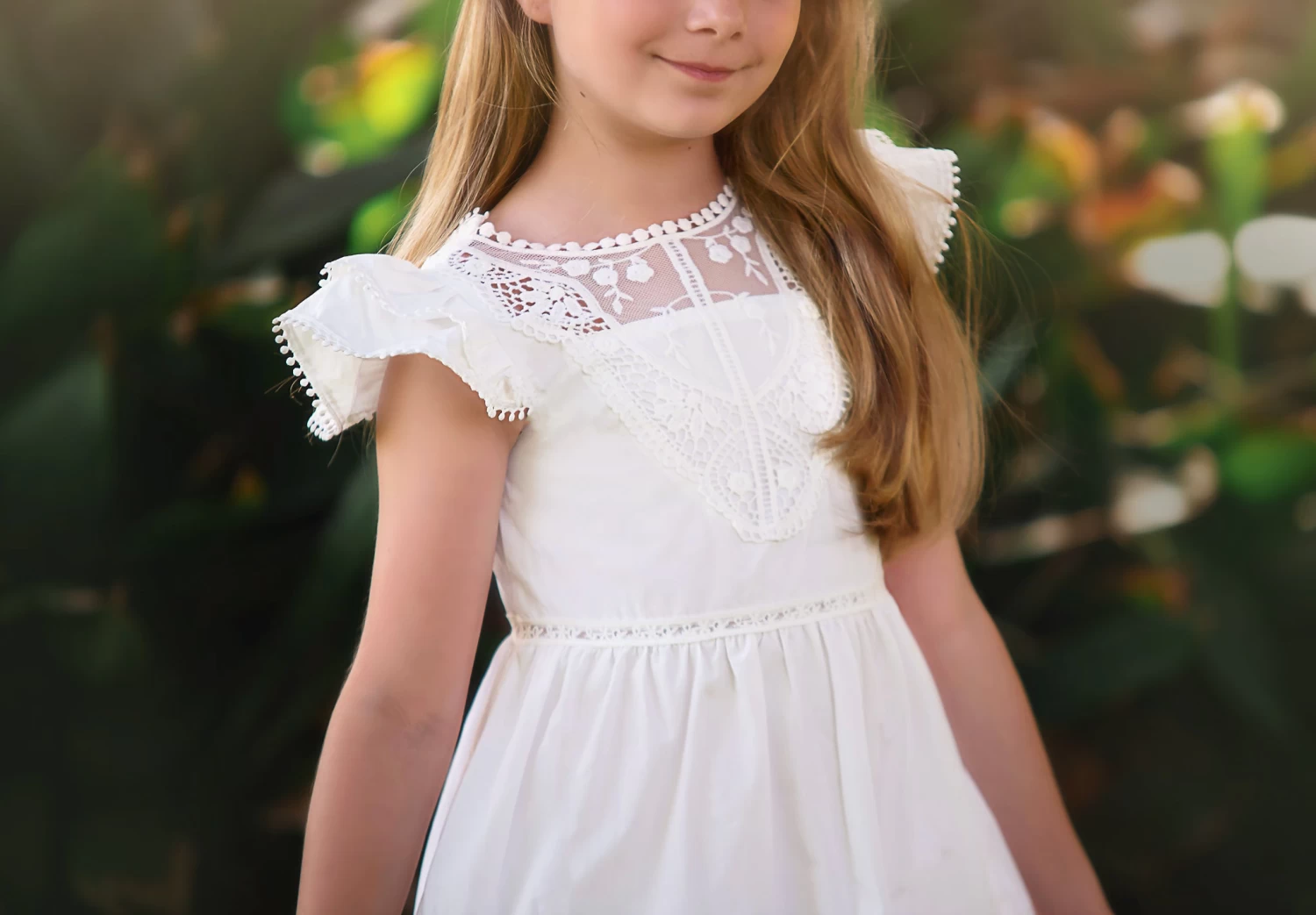 Meet Addison! Our newest, most darling dress yet, she features tiers of gorgeous trims, laces and butterfly sleeves for an extra elegant flare. Finished off with a back-tie!