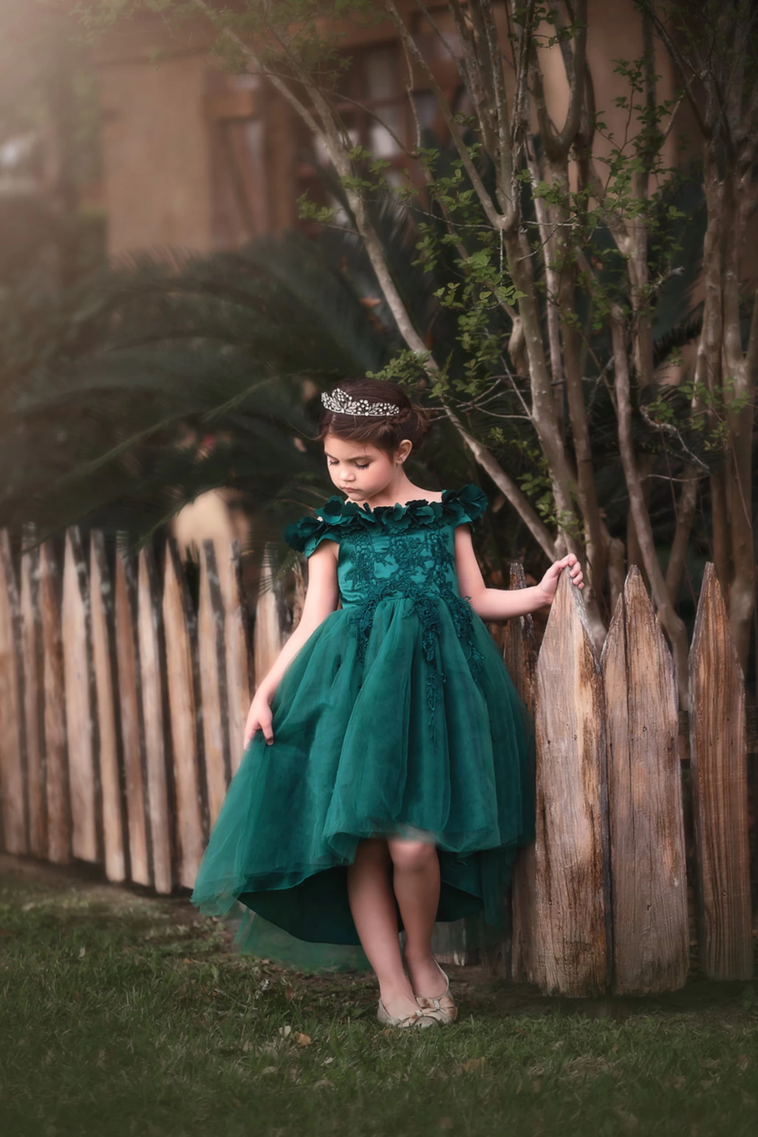 This gown is STUNNING in person. You won’t believe you paid so little for such luxury. The soft bridal satin bodice is covered in gorgeous lace details. The hi-lo skirt is filled with bountiful layers of ethereal tuling, perfect for the girl and her twirl! Laser cut flower details grace the shoulders and neckline for the perfect finishing touch on what is the most perfect dress! Small satin covered elastic shoulder straps keep everything perfectly in place. 100% poly self, 100% soft cotton lining. Fully lined, back zip. Machine wash, hang dry.