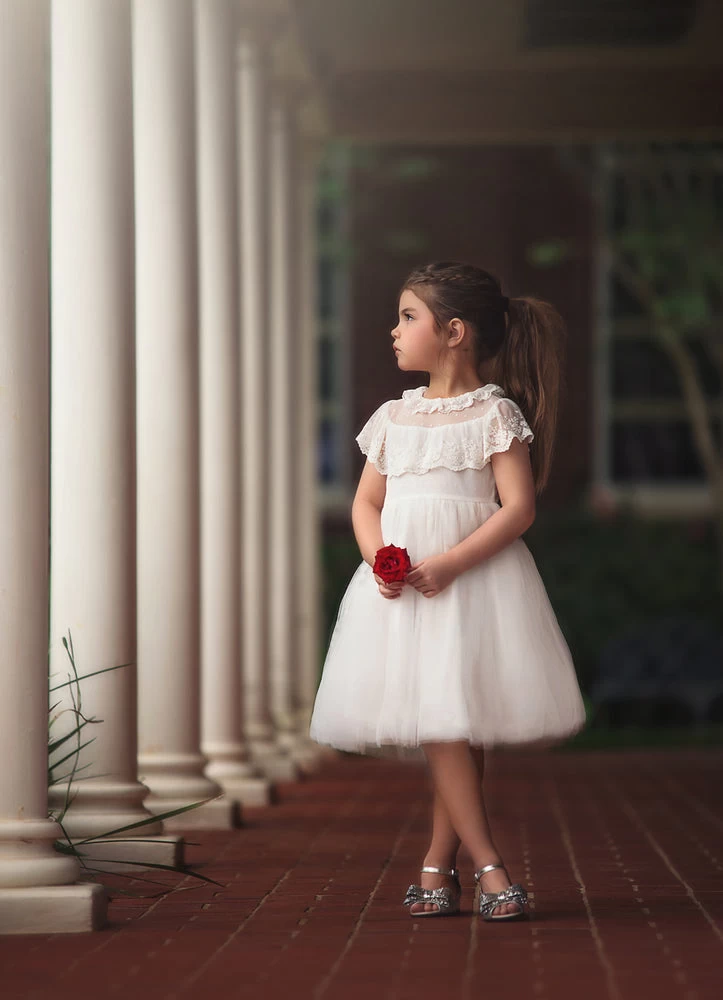 Soft and perfectly elegant for her most special of occasions, the Giovanna dress will have all heads turning. Layers upon layers of tulling grace the skirt of this oh so twirly dress, while a soft flounce of soft lace graces the neckline. This dress is soft and perfectly lined with pure cotton. Back zip. Machine wash, hang dry. 100% poly self, 100% cotton lining.