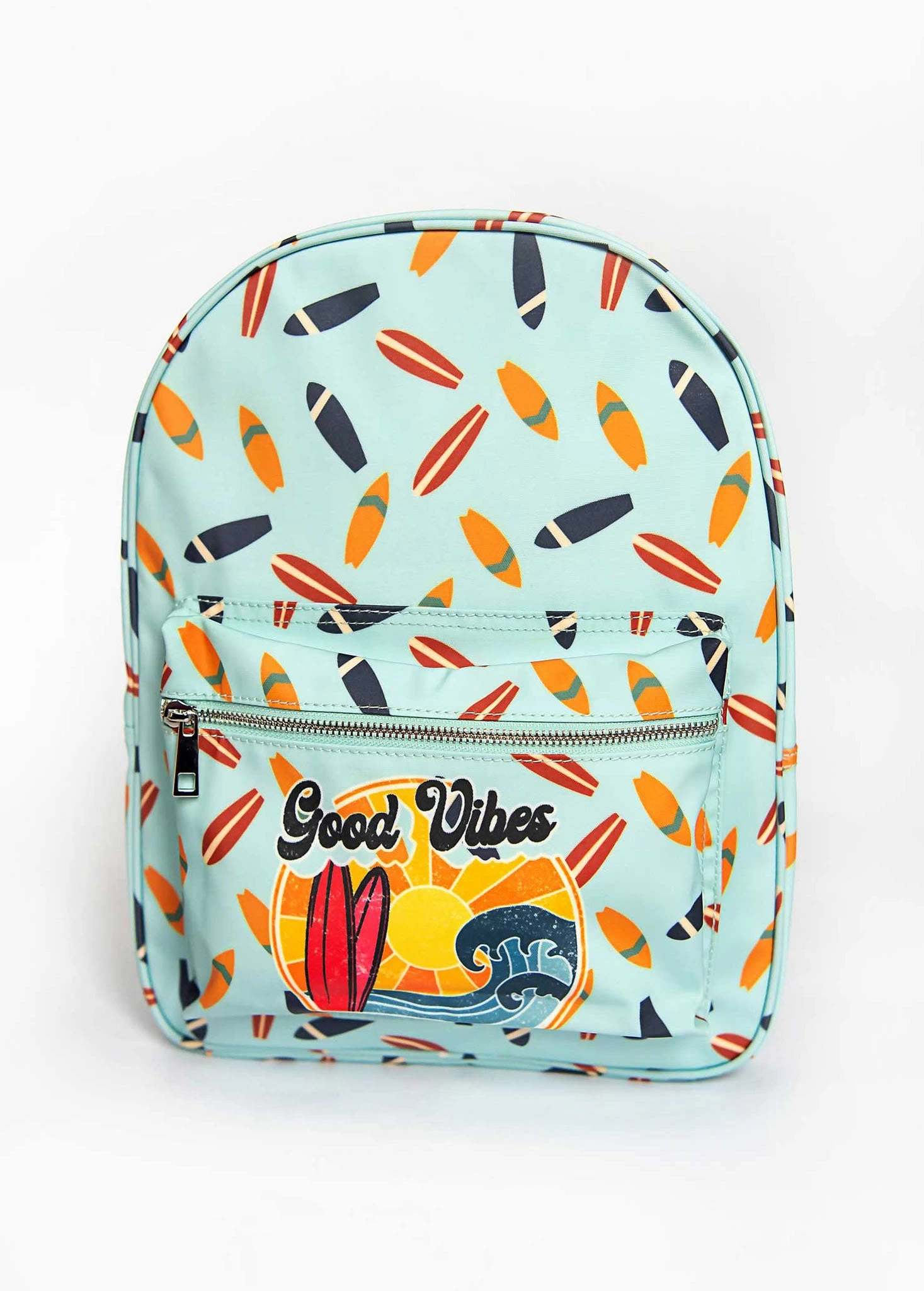 This darling surfboard print backpack features a front pocket for all of his favorite keepsakes and essentials. Perfect for school, play, sleepovers and more! Includes adjustable straps for the perfect fit.