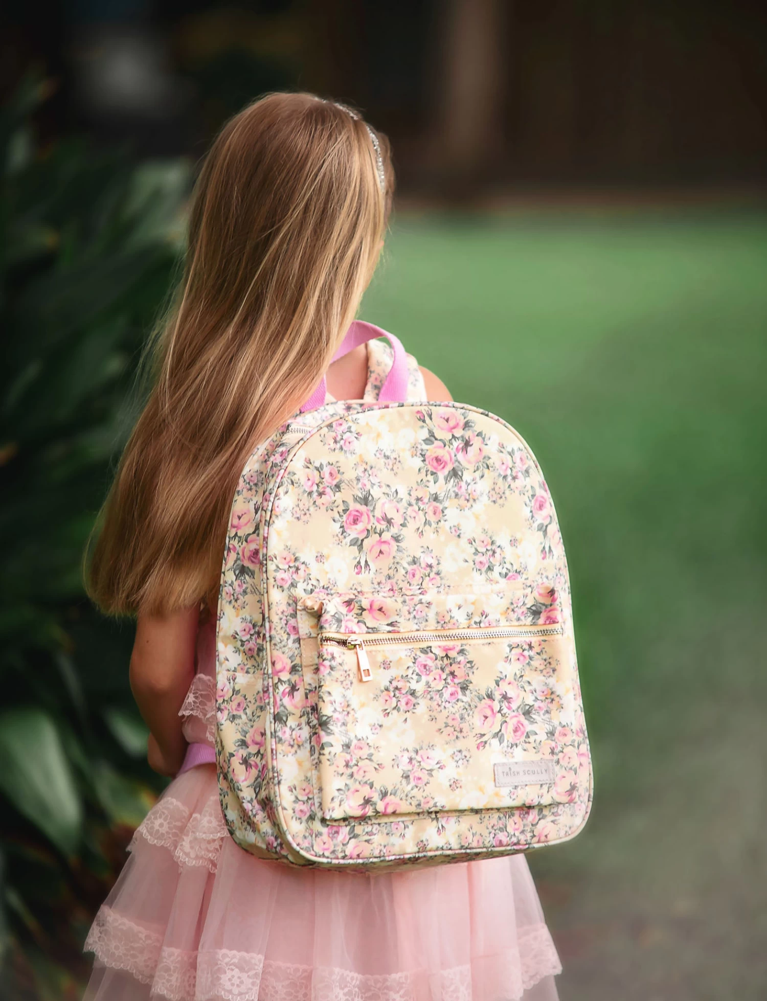 This darling floral print backpack features a front pocket for all of her favorite keepsakes and essentials. Perfect for school, play, sleepovers and more! Includes adjustable straps for the perfect fit.